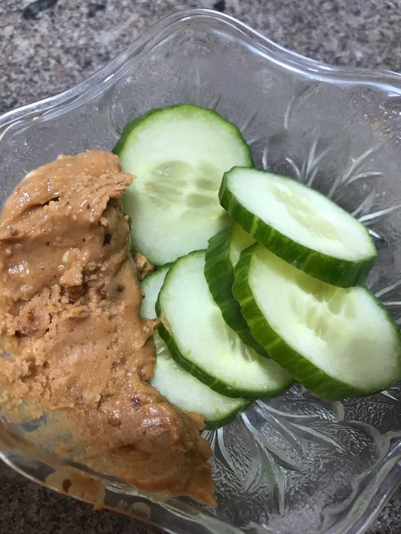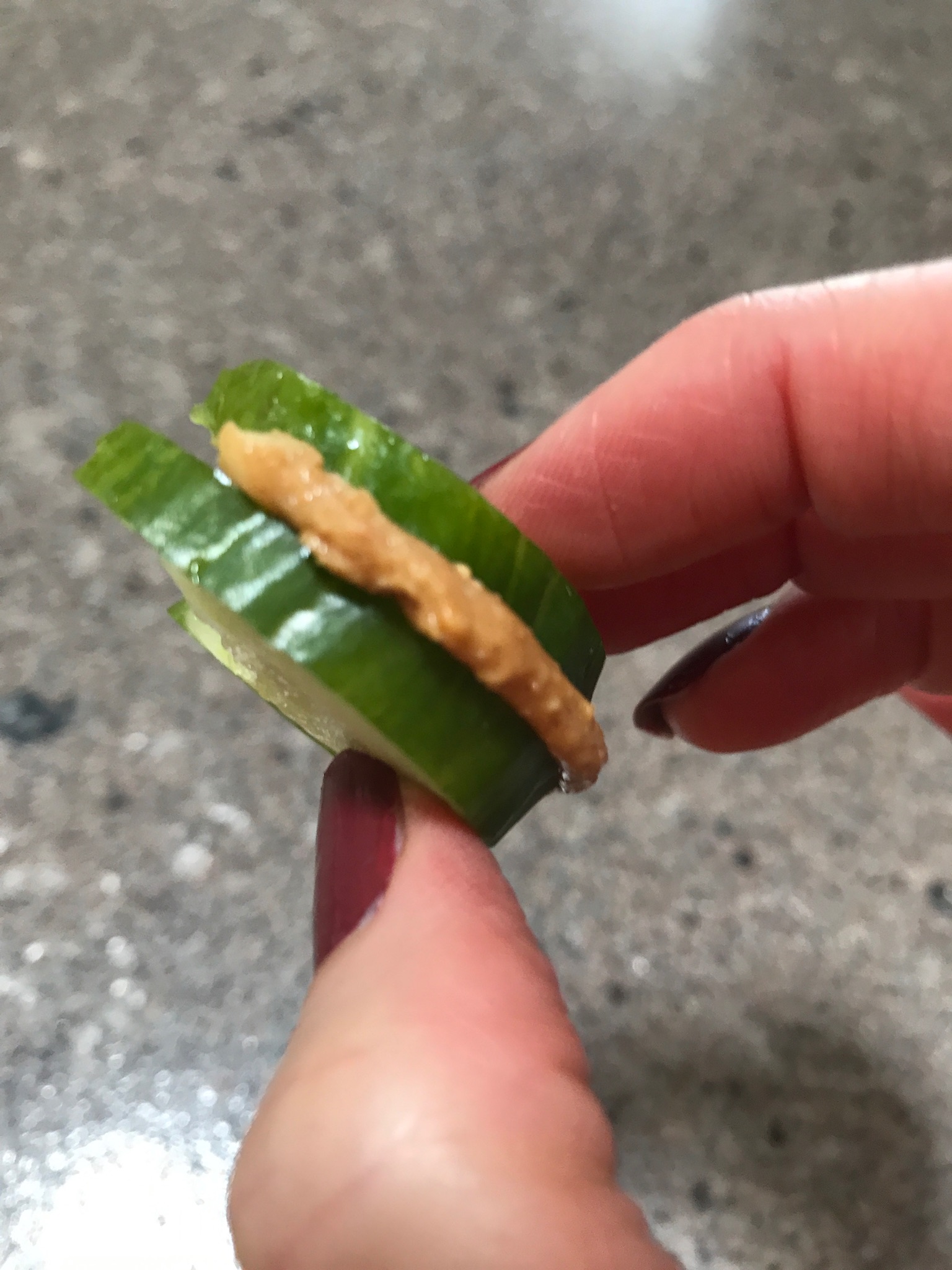 It’s little and it’s yummy. My friend Judy asked me a few months ago if I had ever tried eating cucumbers with peanut butter. No, never occurred to me and I really couldn’t imagine the two tastes together.