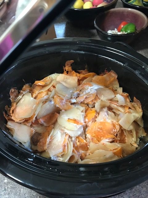 Pour the potatoes on top and cook for 4-6 hours.