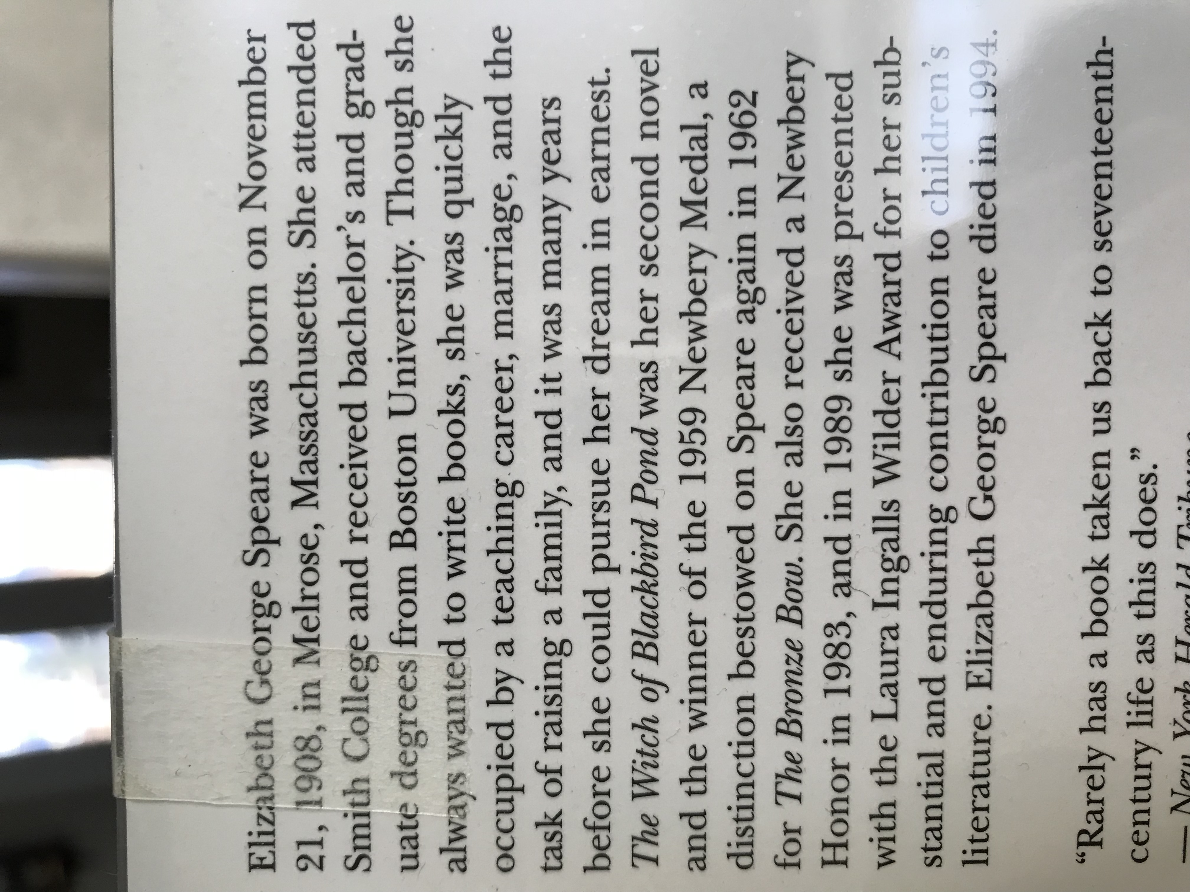 I saw this blurb on the cover of a book I just read by Newberry award winning author Elizabeth George Speare. It reminded me again that life is a long time! She got an education, married, taught school, raised a family and THEN began her very successful writing career!