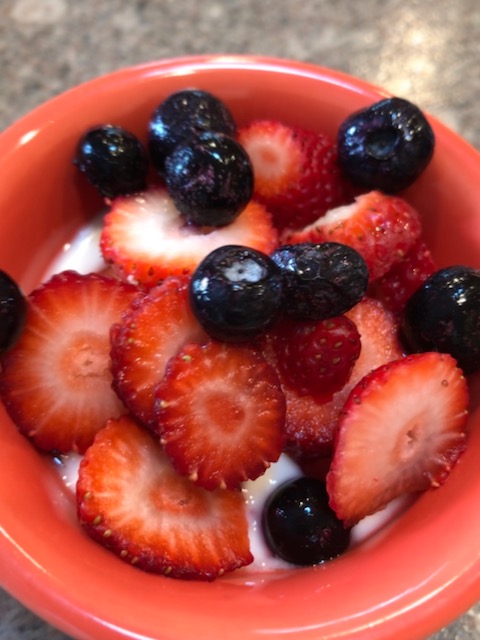 Pictured here is the simple vanilla yogurt and berries “dessert” that I served after our dinner last Sunday.